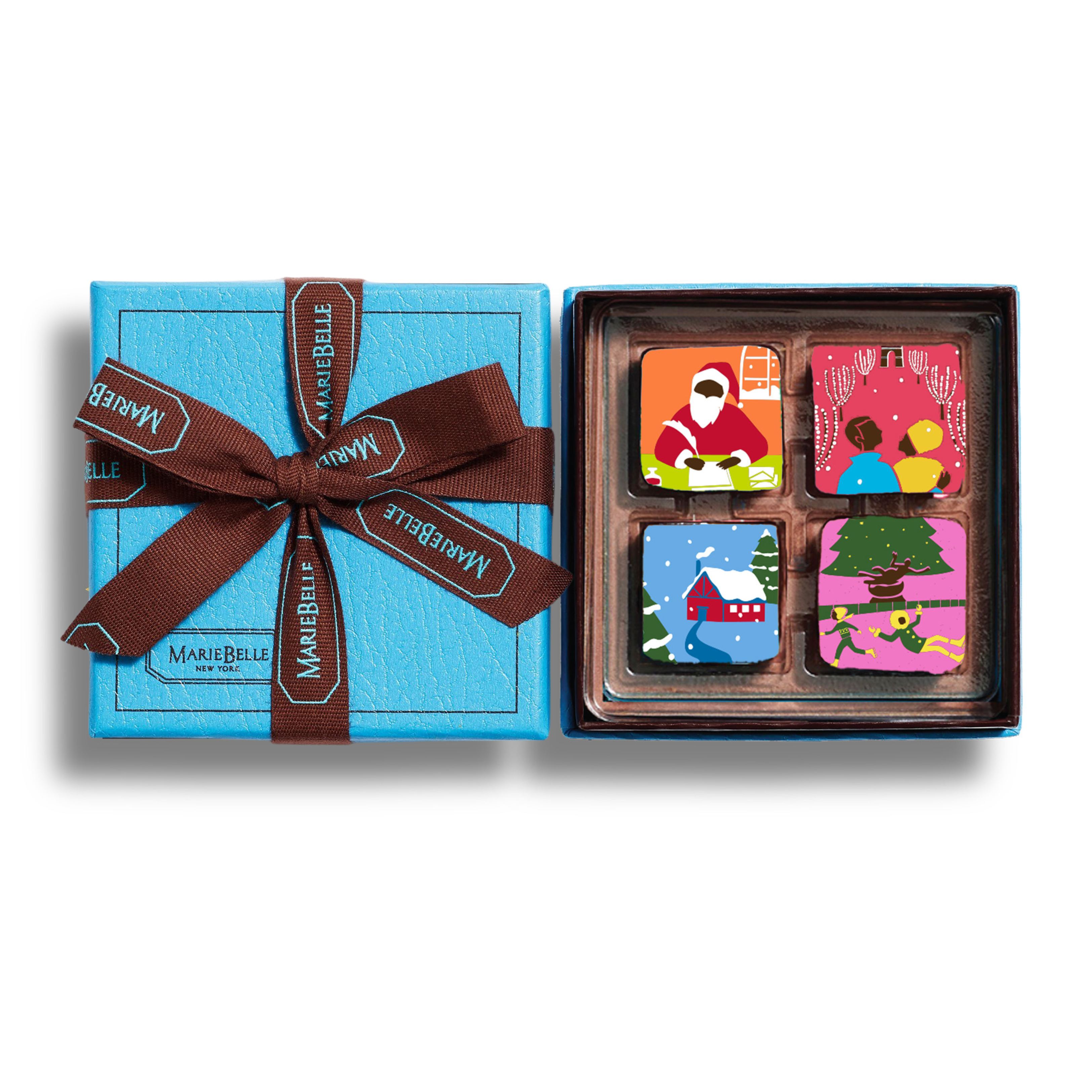 Prepare to embark on a delightful journey into the holiday season with MarieBelle New York’s exclusive 2024 Holiday Collection. Perfect for gifting and sharing, this enchanting 4-piece box features whimsical holiday chocolate ganache, each adorned with a captivating design that encapsulates the essence of holiday magic.