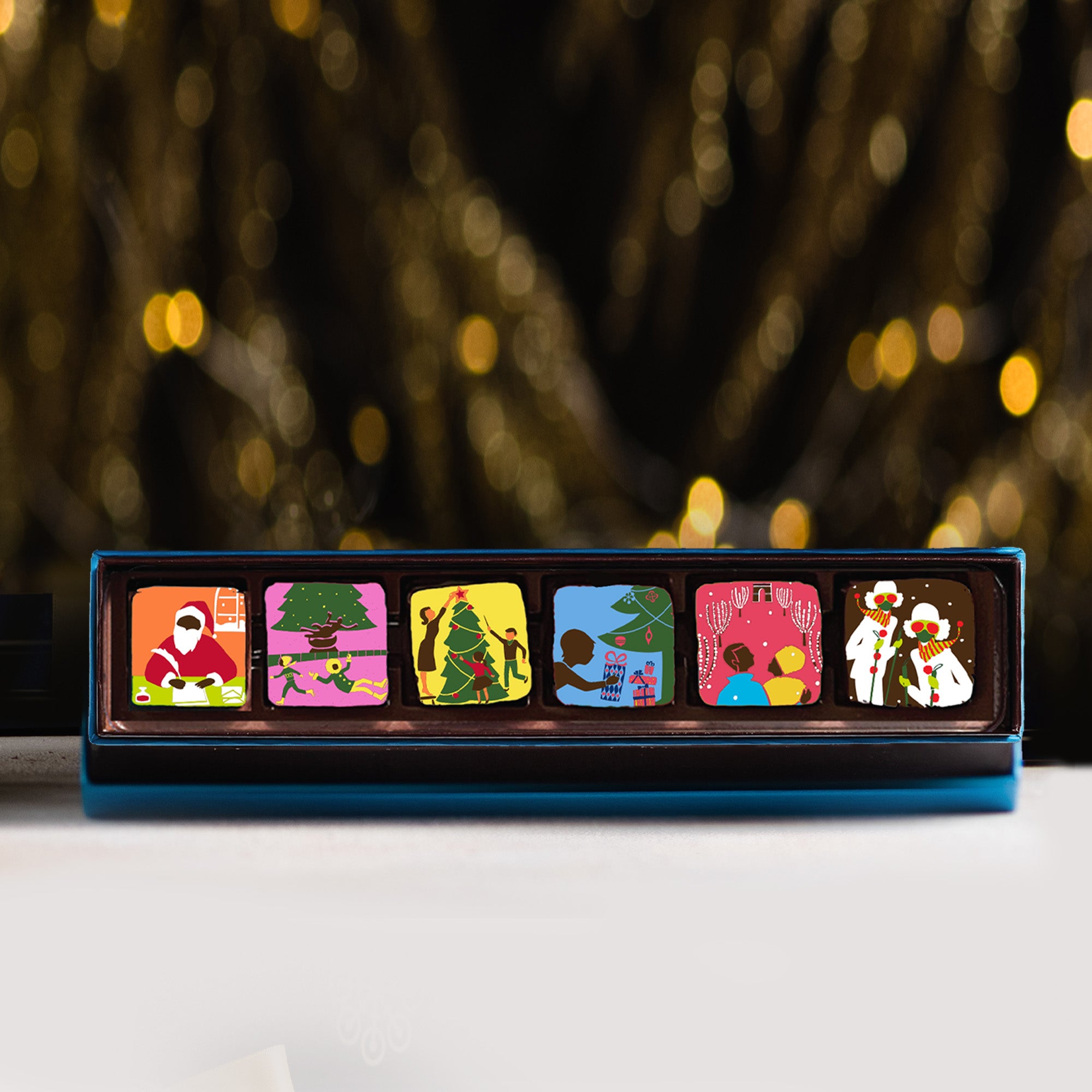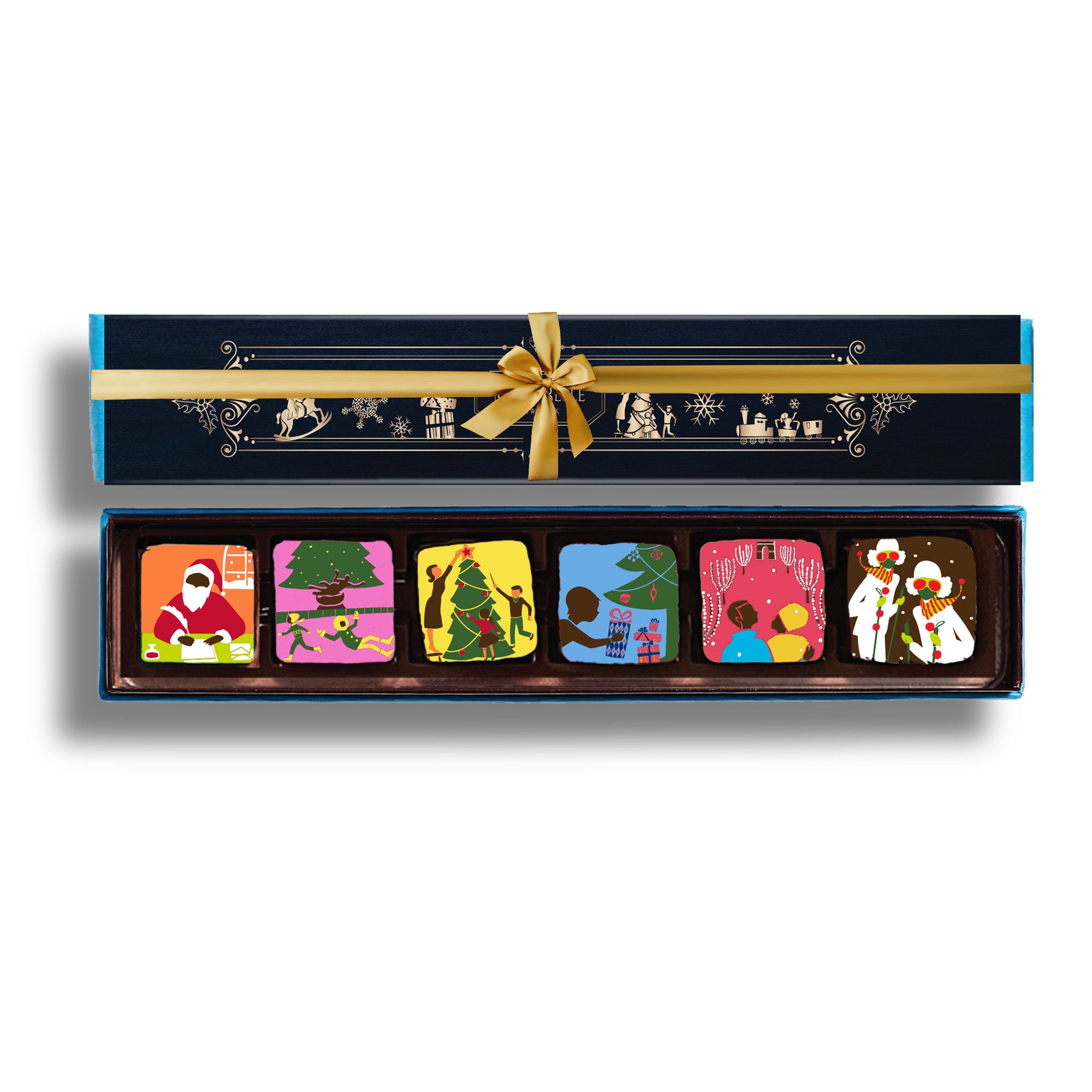 Get ready to immerse yourself in the enchanting spirit of the holiday season with MarieBelle New York’s exclusive 2024 Holiday Collection. Perfect for gifting and sharing, this delightful 6-piece gift box showcases whimsical holiday chocolate ganache, each beautifully adorned with designs that capture the very essence of the festive season.